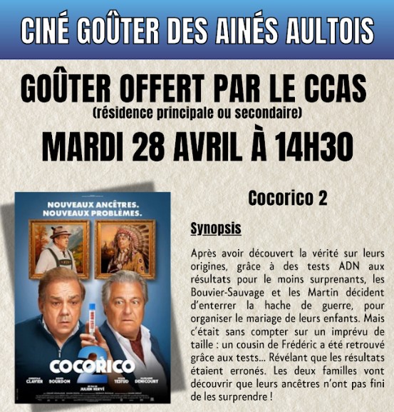 CINÉ + GOUTER POUR LES AINÉS AULTOIS LE MARDI 28 AVRIL 2026