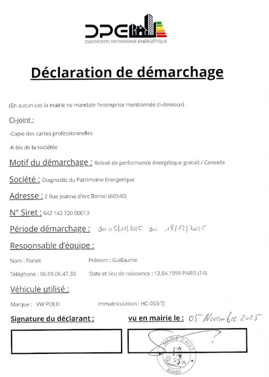 Une société appelée Diagnostic du Patrimoine Énergétique passera sur la commune entre le 5 novembre et le 18 décembre 2025 pour proposer des relevés énergétiques gratuits et des conseils.