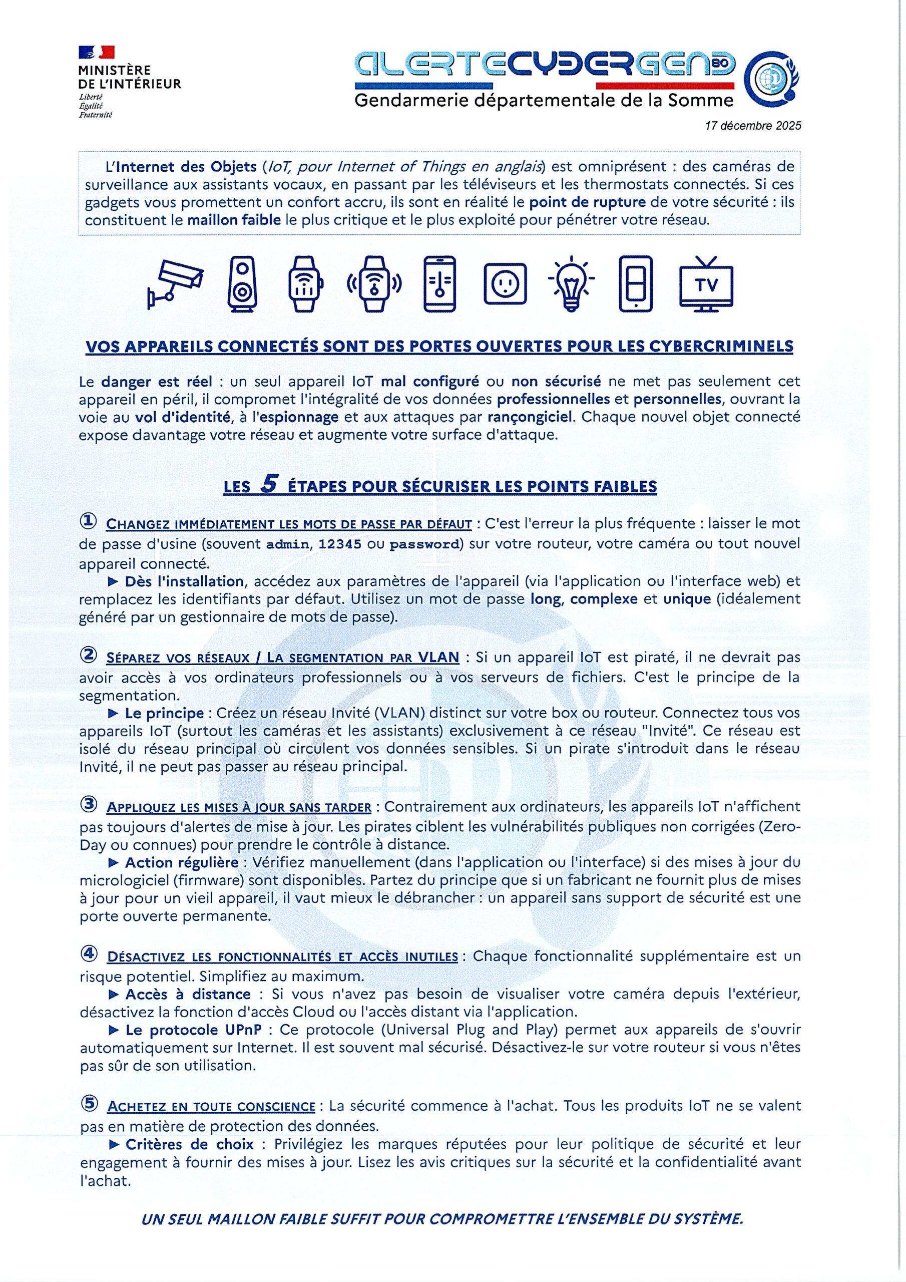 ALERTE CYBER GEND80 – APPAREILS CONNECTÉS ET CYBERCRIMINELS
