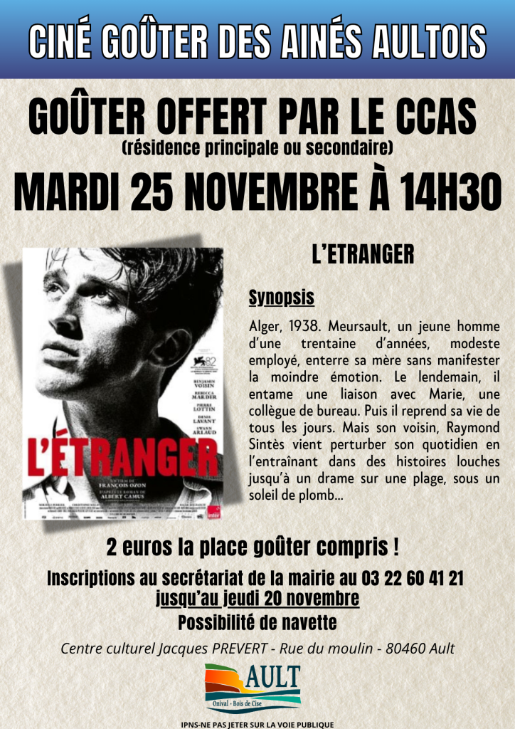 CINÉ + GOUTER POUR LES AINÉS AULTOIS LE MARDI 25 NOVEMBRE 2025