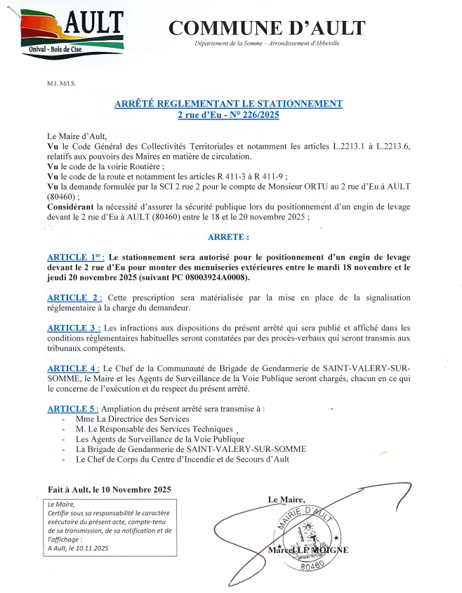 Arrêté n° 010 /2025 du 23 janvier 2025