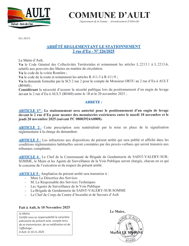 Arrêté n° 202 /2025 du 10 septembre 2025
