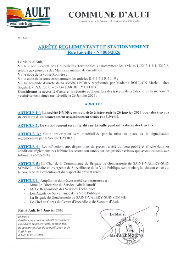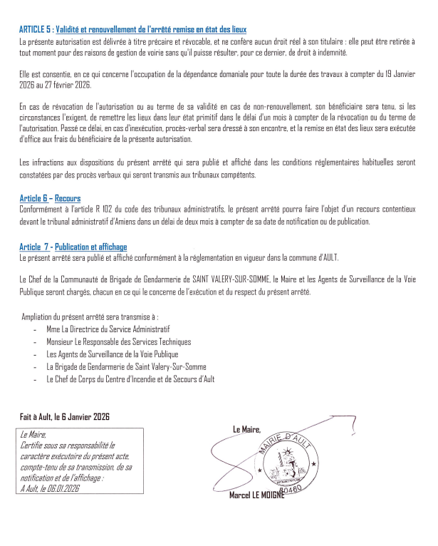 Arrêté n° 001/2026 du 06 janvier 2026