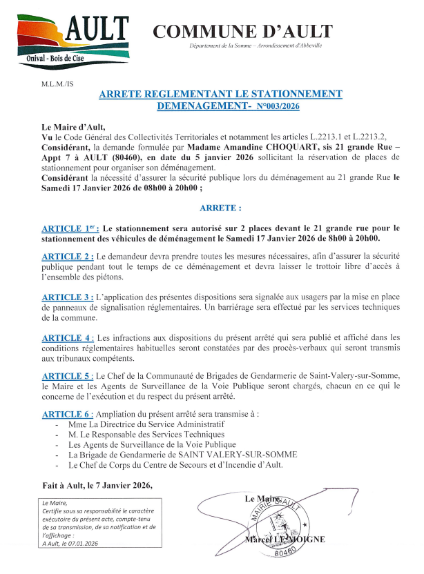 Arrêté n° 003/2026 du 07 janvier 2026