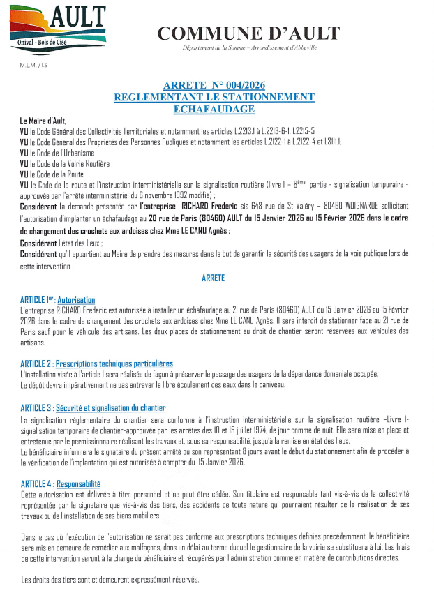 Arrêté n° 004/2026 du 07 janvier 2026